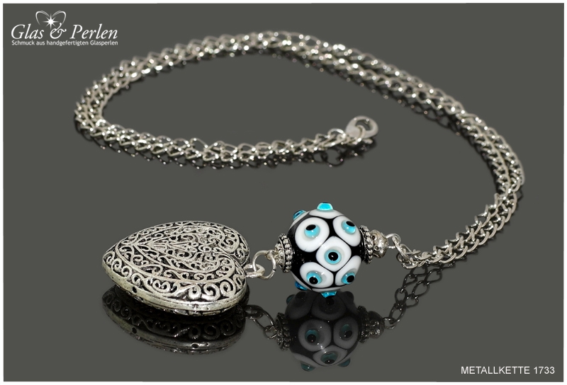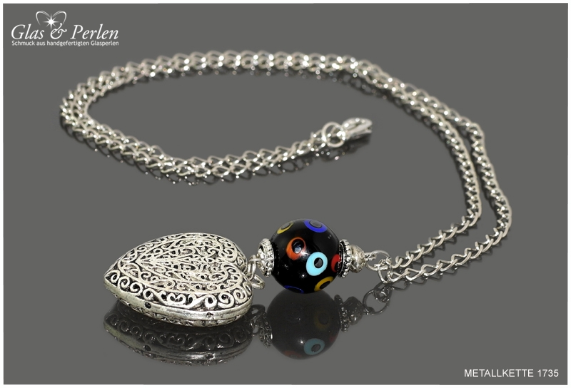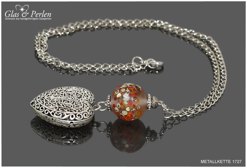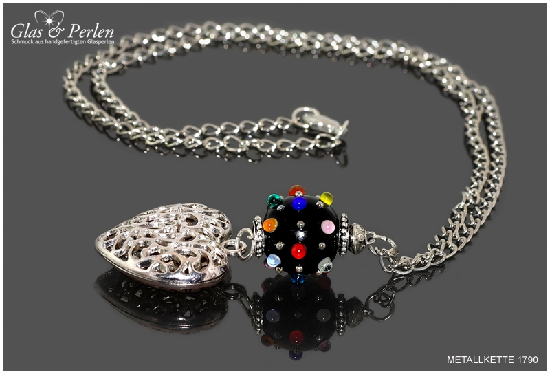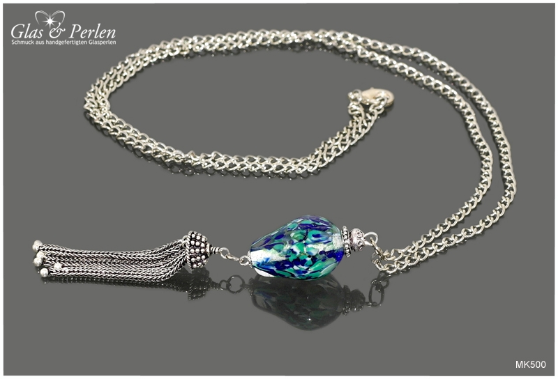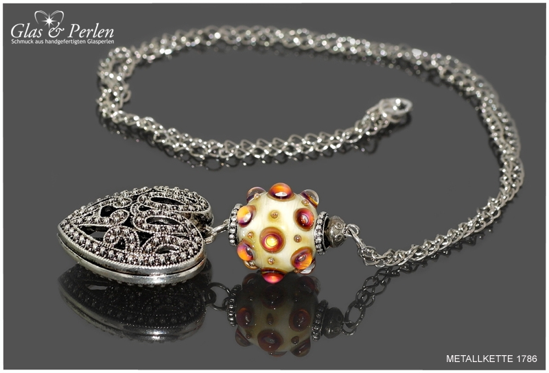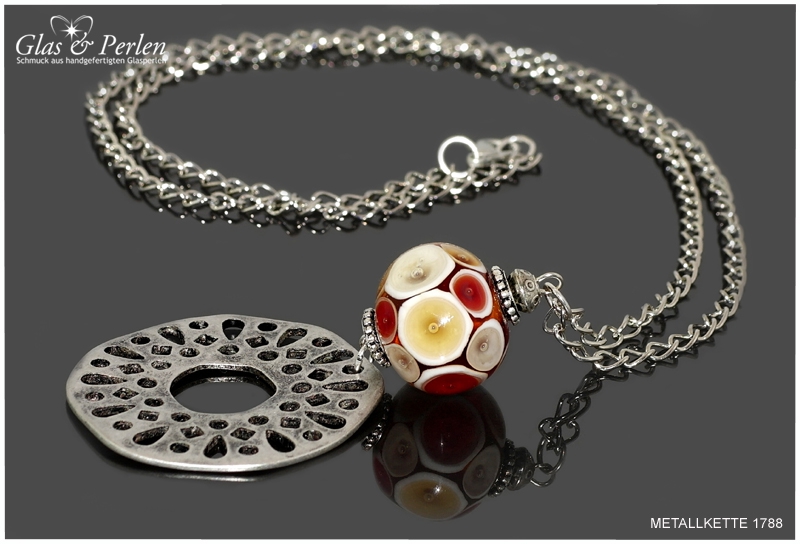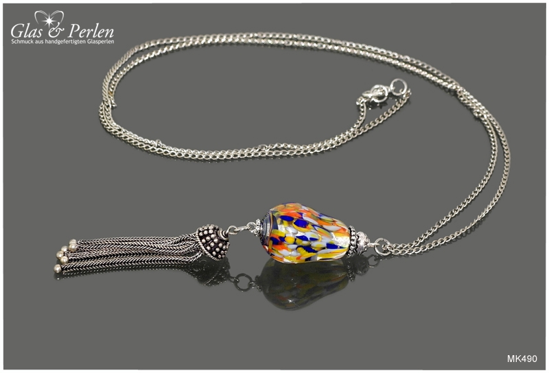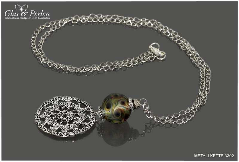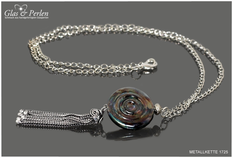 METALLKETTEN In dieser Rubrik findest Du meine Metallketten. Verwendete Materialien sind, neben den handgefertigten Glasperlen, Quasten aus Metall, Edelstahl oder Silber.