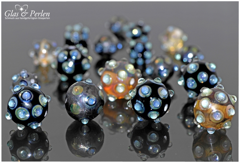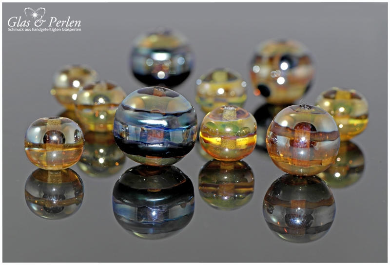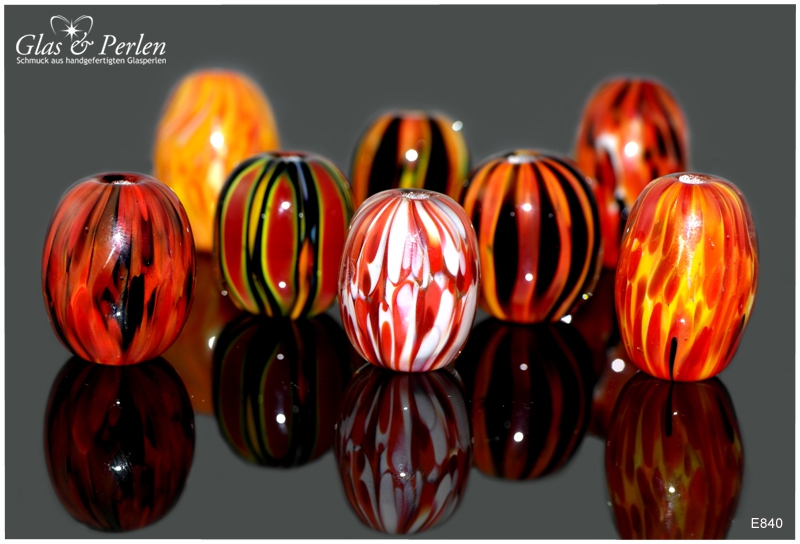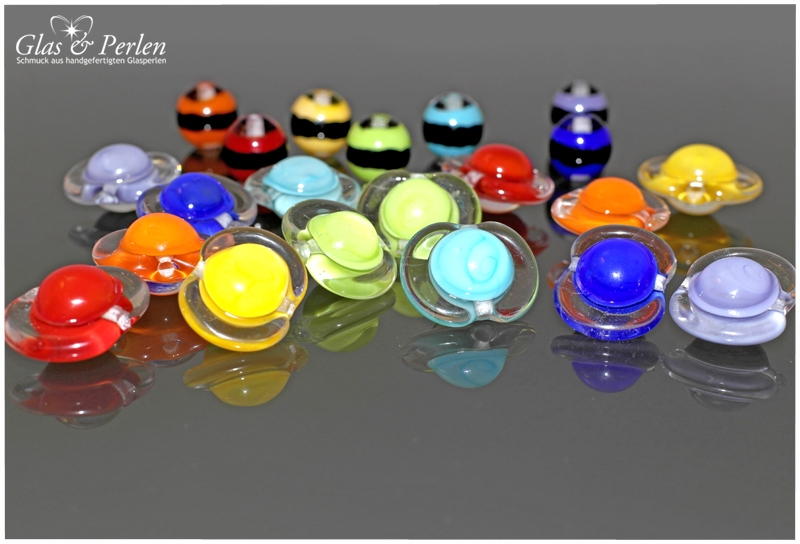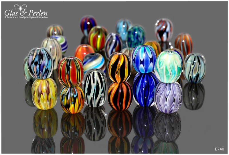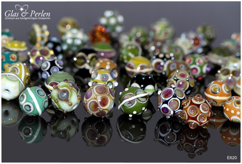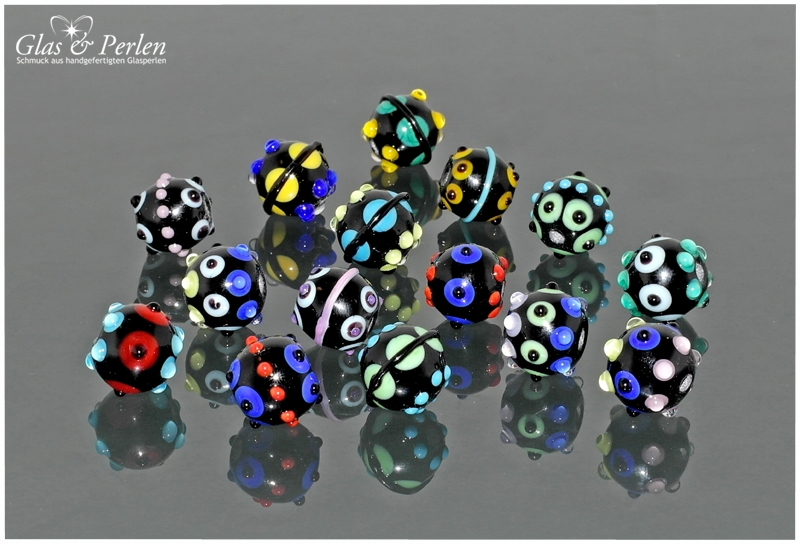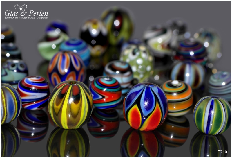 Grosse, buntfarbige Glasperlen, wie die Markasitperlen oder die gewickelten Perlen, welche unter anderem als